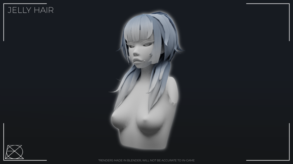 A simple hair that I made based off the jellyfish hair style, and I thought that it would be a simple enough style to tackle as my first hair! The card at the end of the photos will include the physbones info I used in the video, but you can customize it to your preference.